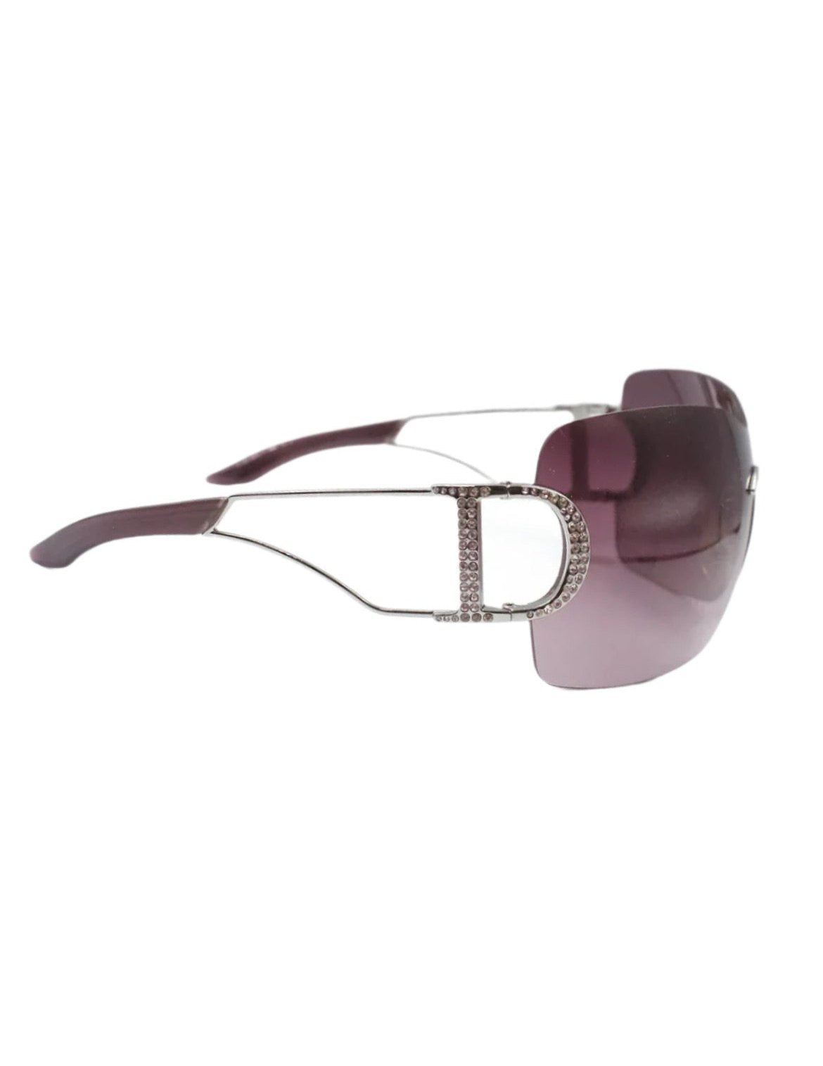 Diorly shield sunglasses from Dior. They feature a gradient lense and crystal-embellished cut-out 'D' logo details on the temples. Purple rimless glass that are suitable for every face shape and so sexy!