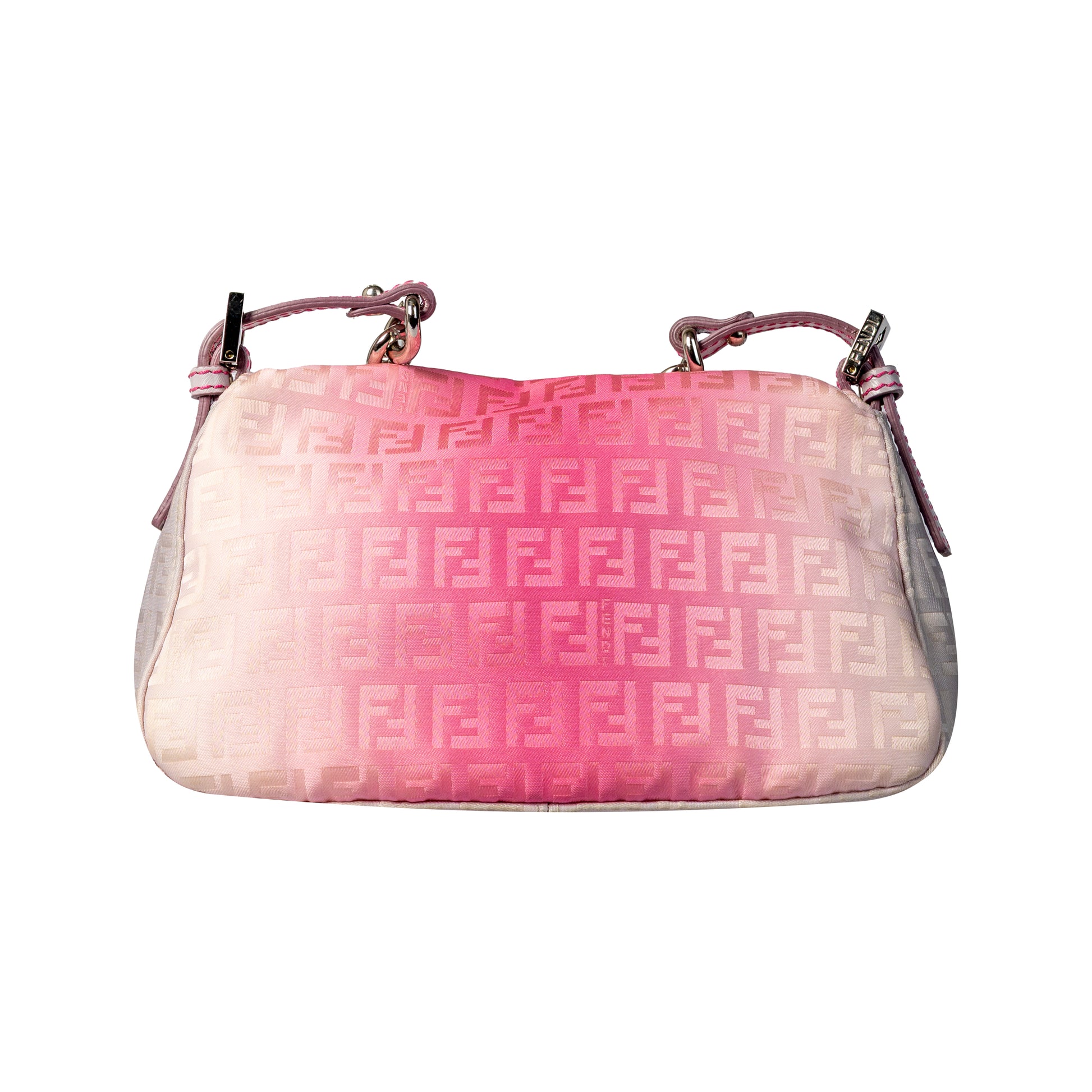 A striking vintage gem from Fendi, this Mini Mamma Baguette Shoulder Bag features the iconic FF monogram canvas with a rare and beautiful pink ombré gradient finish. Compact yet statement-making, this piece combines early 2000s nostalgia with timeless Fendi craftsmanship.
