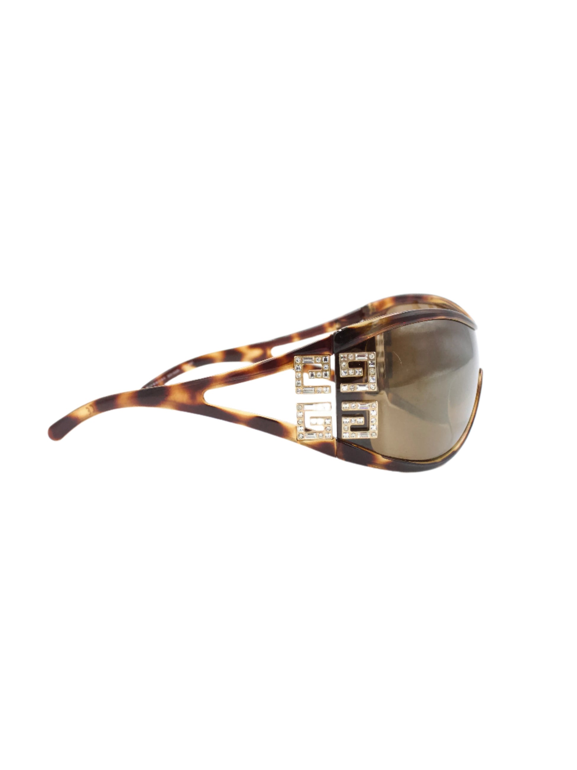Givenchy big framed sunglasses with the Givenchy rhinestone logo on the sides.