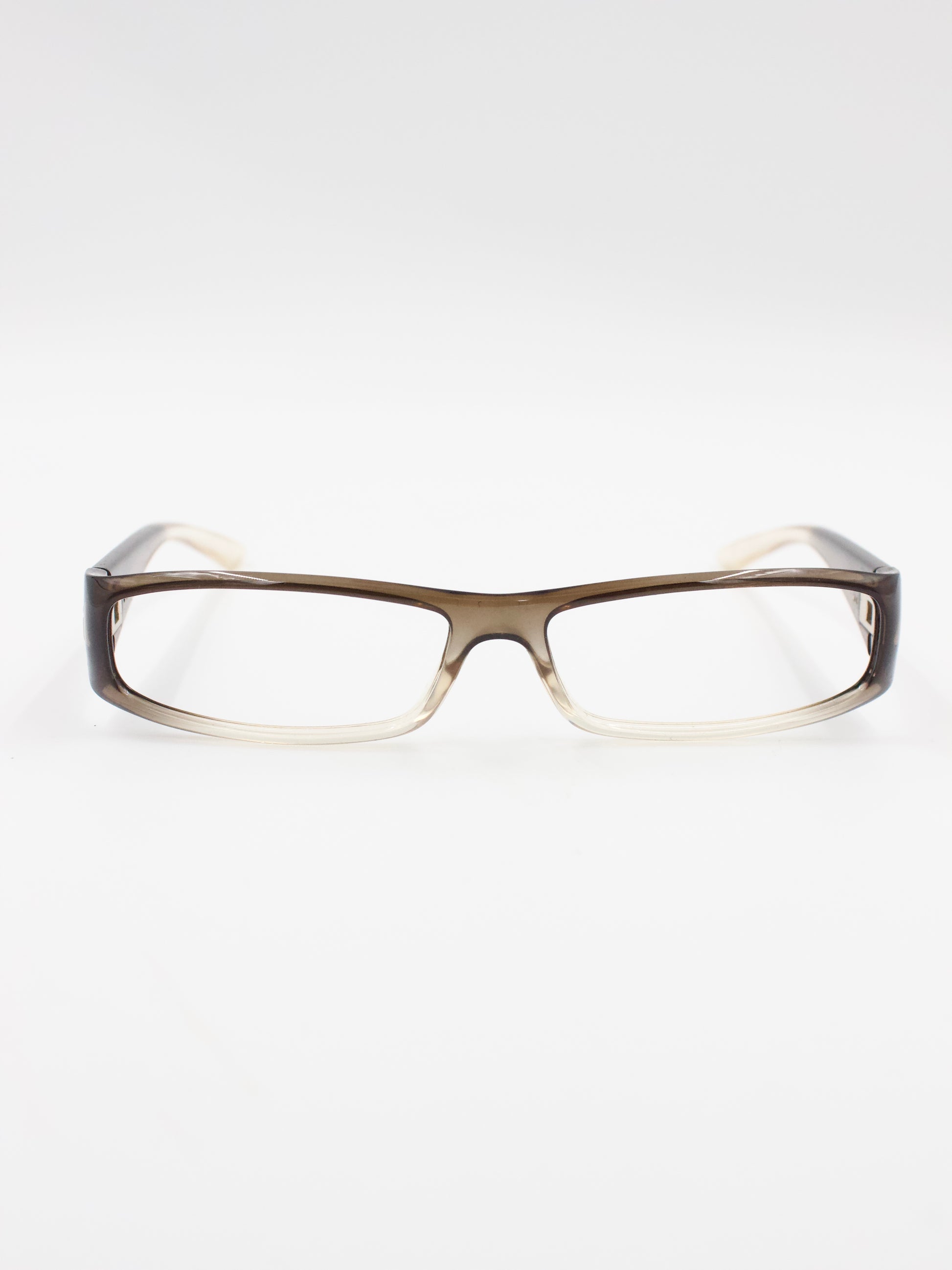 Gucci rectangle brown ombre reading glasses with Gucci "G" logo on each side.