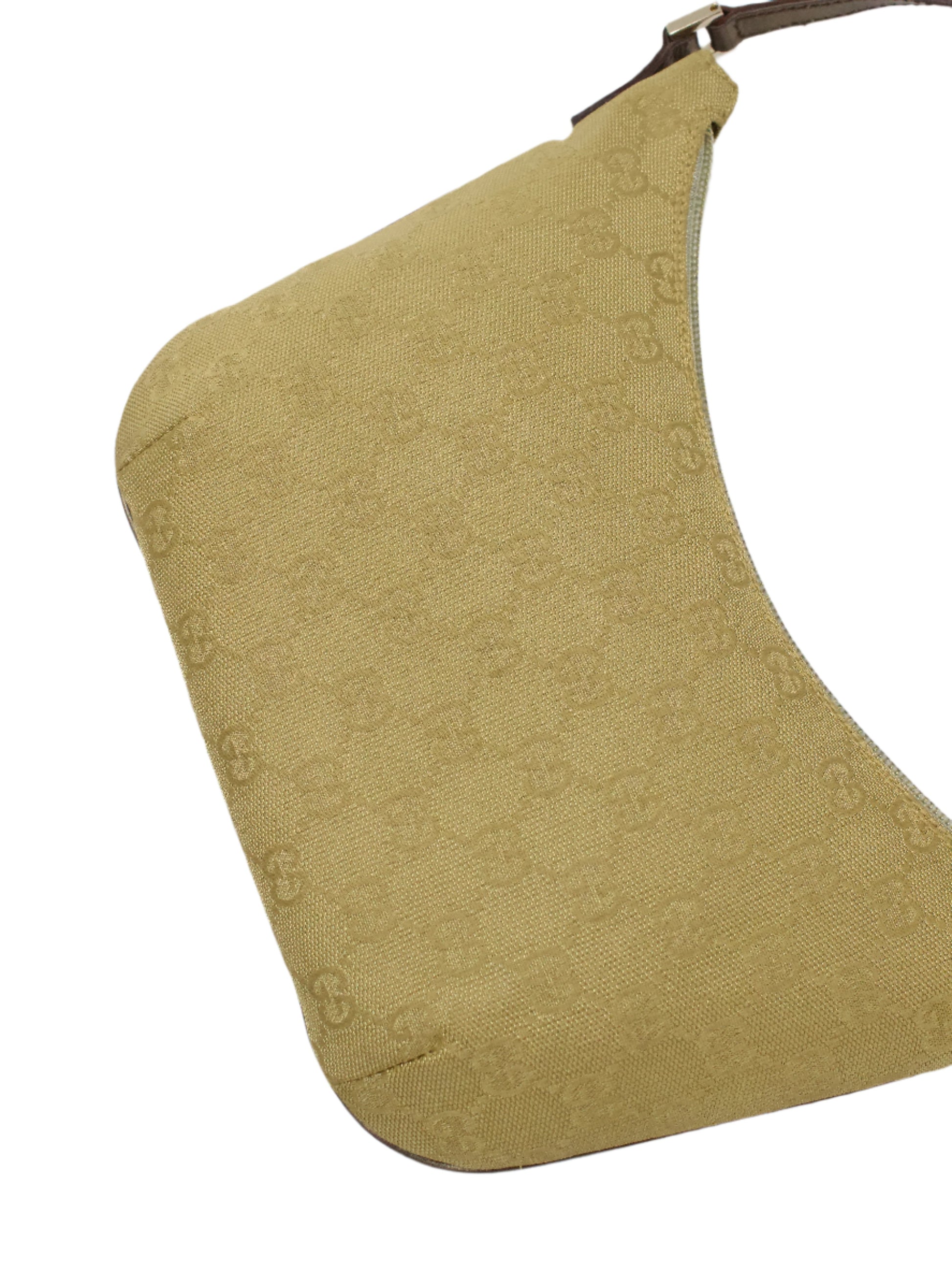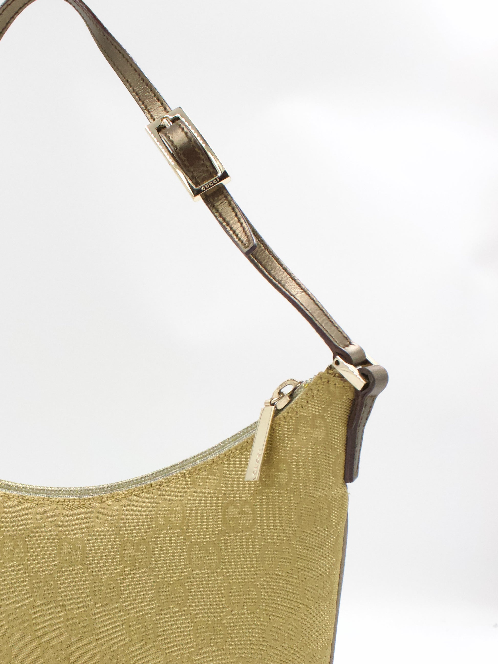 The most stunning gold Gucci bag featuring the iconic Gucci monogram. Such an stunning color with a slight shimmer to the bag. The bag is in amazing condition with no damages. Bronze lining and a shimmery bronze bag strap.