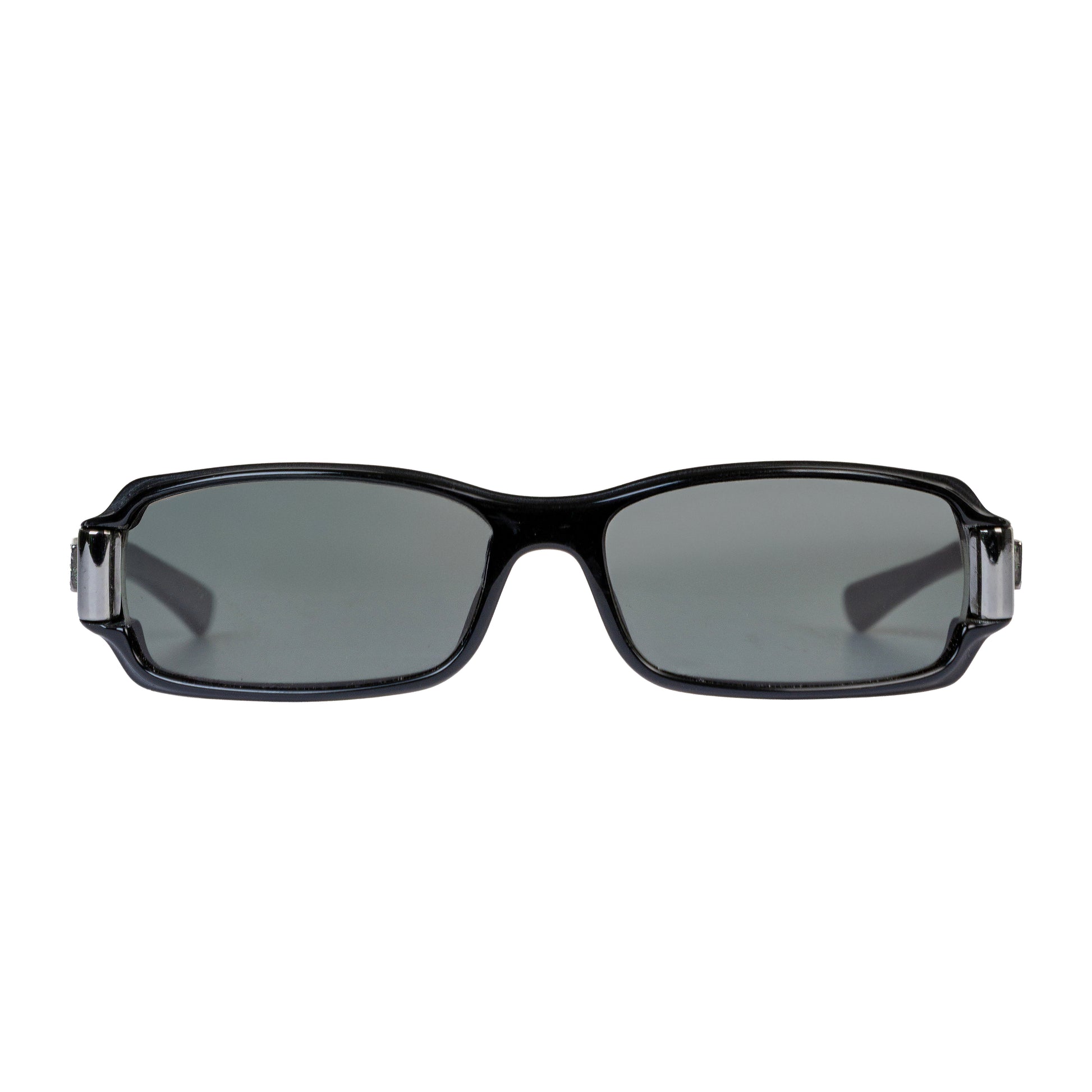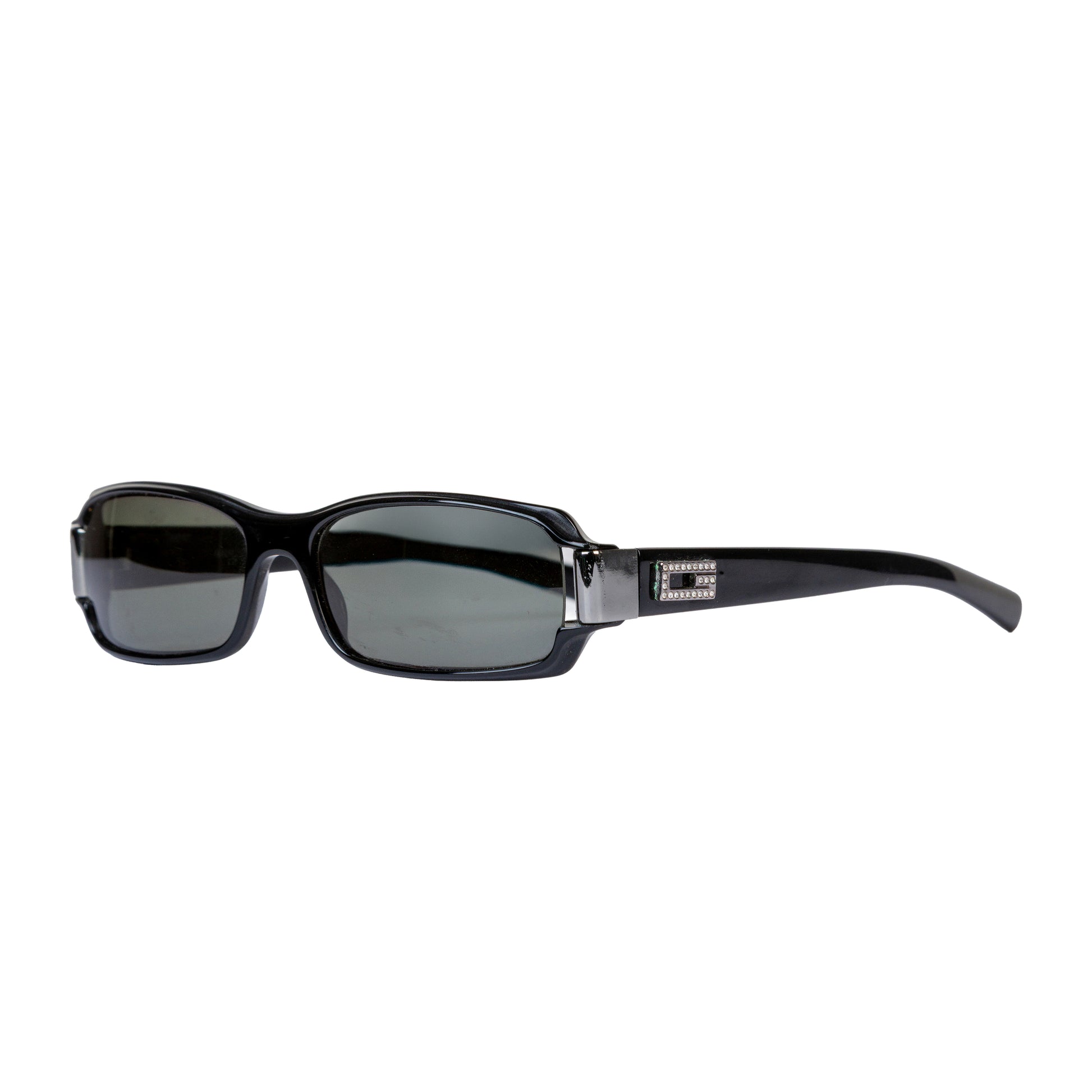 Black Gucci rectangle sunglassses with GG rhinestone logo on the side.