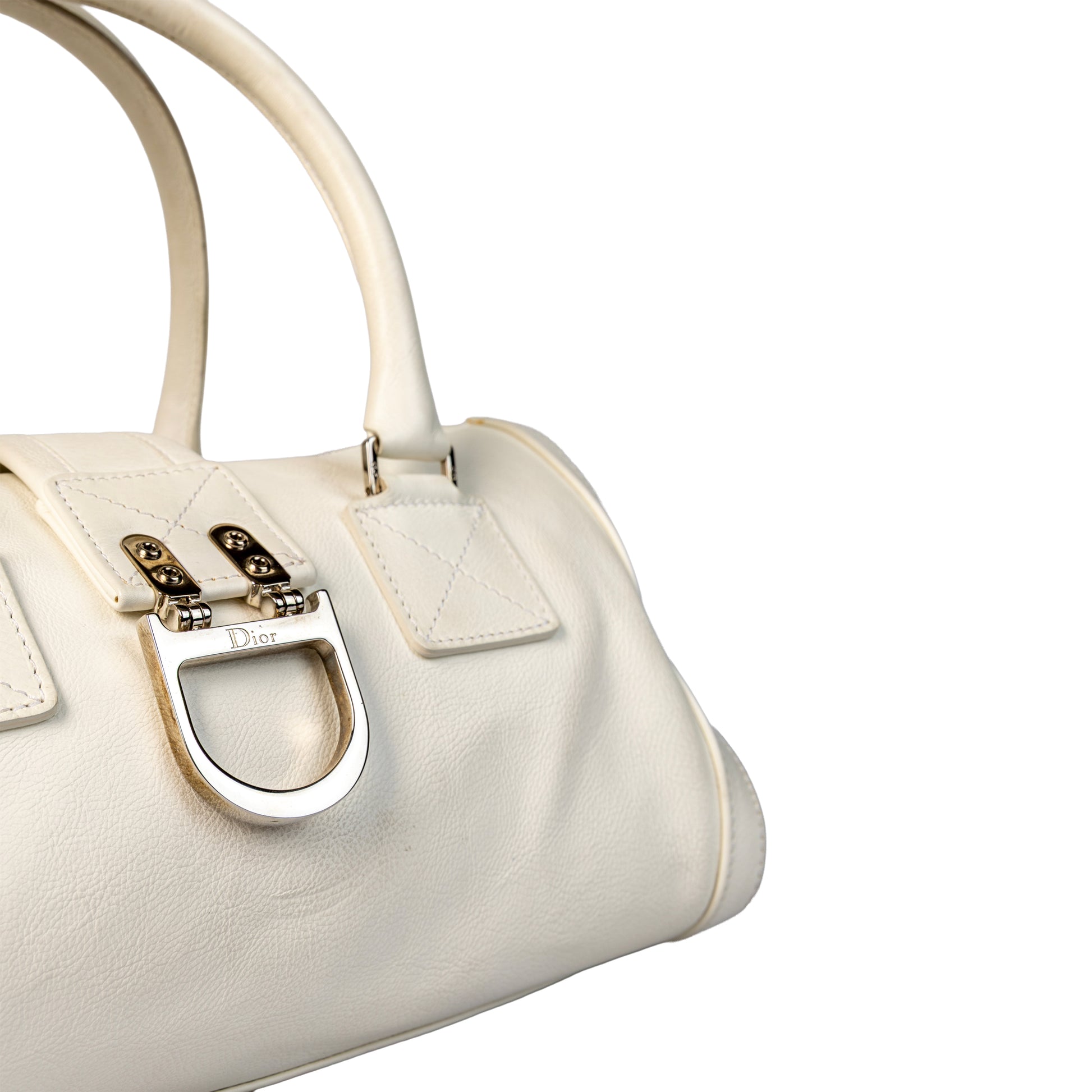 Sleek and sporty with a touch of iconic luxury, this Christian Dior white duffle bag is a standout vintage piece. Crafted in smooth white material and accented with a silver-tone Dior ‘D’ buckle, it blends functionality with signature Dior style. A rare find in this condition, perfect for collectors or everyday chic.